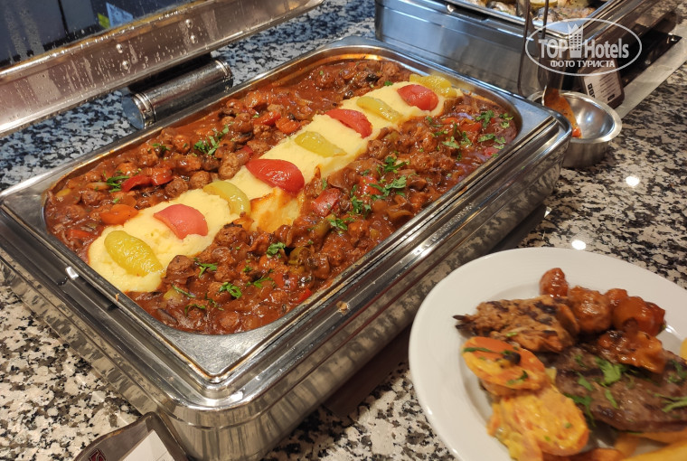 Вкусная. Рыба белая на гриле на обед и ужин. Пару раз была соленая, пару раз красная на гриле, холодного копчения. Мясо курица, говядина, котлетки, соте с мясом разные. Суп целый день. В остальном как обычно. В тур входит бесплатное посещение 3 ресторанов Аля-карт: Олимпос, Суши и Монгольский. Есть гезлеме, мороженое.