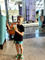 Что касаемо еды-очень вкусная и разнообразная. Есть мясные блюда на гриле, рыба, супы, для детей разнообразные каши(включая гречку), хлопья, блинчики и тд. Еду набирали сами, очередей не было даже в заезды.По напиткам всё тоже хорошо. Чаевые естественно приветствуются и сделаю ваш отдых более приятным)