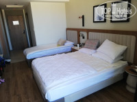 Приехали в отель мы в 23.00. Конечно нас сразу заселили в оплаченный стандарт с видом на «сад». В отеле удобная система, нет карточек от номера, а открывание двери в номер осуществляется отельным браслетом в него встроен датчик.