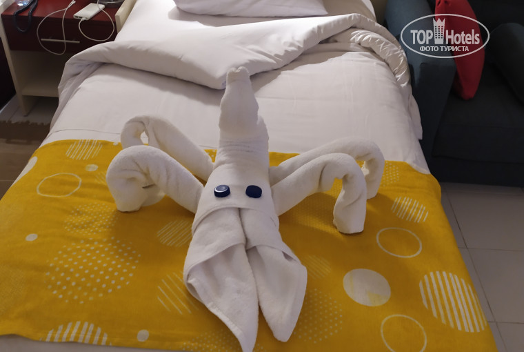 Очень приятно поразило отношение всех служащих и работников отеля: каждый встречный поздоровается, спросит, всё ли нормально, и все улыбаются. Очень позитивные.