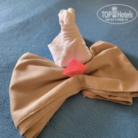 Номера: ну, нужно понимать, что нового там ничего нет. Розетки работают без переходников. Комаров не было. Зря брали репиленты. А вот бельевая верёвка пригодилась, чтобы сушить вещи. Номер убирают регулярно. Мы брали с собой взятые по акции шоколадки Алёнка и оставляли вместо чаевых. Девчонки крутили лебедей, меняли полотенца (именно меняли) каждый день, ставили воду (хотя стояла другая и мы не успевали выпивать).Телик на отдыхе (да и вообще) не смотрю, что там с каналами - не скажу.