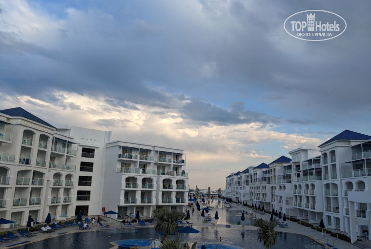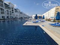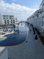 Территория средней величины, при входе находится рецепшен с лобби, далее по правую и левую сторону идут здения с номерами. По центру несколько бассейнов. Ближайший бассейн к рицепшен - подогреваемый, в нем же джакузи. Зелени пока что маловато, но это не страшно. На пляже много лежаков и зонтиков, красивый пирс, который подсвечивается ночью. Яхты стоят за территорией, на которую можно заплыть, поэтому как по мне это скорее преимущество и бонус. Так же на пляже есть велотренажеры и спортивные снаряды.