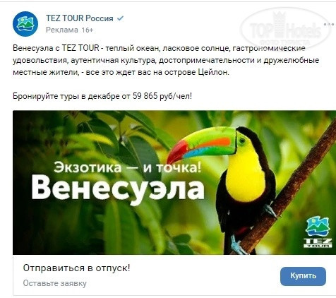 Когда все организационные стрессы были преодолены, и мы, потратив на это неделю своего долгожданного отпуска, стали обладателями нового тура от Fun&Sun, на глаза попалась занятная реклама того же «Тез Тура», приглашающего своих туристов совершить путешествие на о-в Цейлон в… Венесуэлу (см. фото под отзывом). Это навело на размышления о том, что не все туроператоры знают, куда продают туры и отправляют своих туристов (( Как можно перепутать Южную Америку с Юго-восточной Азией – остается загадкой! Сразу подумалось: может, оно и к лучшему, что тур в Хургаду у них отменился, а то так прилетишь вместо Египта в гости к пингвинам! ))