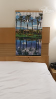 Еще над нашей двуспальной кроватью висели картины. Две. Но одинаковые. Вот прямо реально 2 копии. Видимо, каждому по картине, чтобы не было обидно. Потому что другой логики я не нахожу (см. фото). Одну из них мы сразу сняли и на ее место повесили привезенный из дома веселенький настенный обогреватель с пальмами (см. фото), без которого просто заморозились бы от стоящего в номере холода. Рядом с ним расположили сушилку, где ежедневно сушили мокрые купальники, безгранично радуясь своей предусмотрительности. Ни одной батареи или какого-либо отопительного прибора в номерах не предусмотрено. Даже в ванной нет привычного полотенцесушителя, а кондиционер не работает на обогрев. Поэтому всем очень рекомендую последовать нашему примеру!