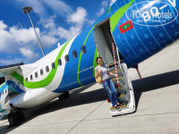 Время улетать: забирают вас 4:40, сумки к двери вы должны поставить к 3:30. Сдаёте ключ, вас сажают на катер и везут обратным маршрутом. Примерно к 6.00 утра вы в первом аэропорту. Напоминаем, что алкоголь нельзя вывозить. В 7.00 самолёт, и в 11.00 вас сажают в самолёт. В наш вылет рейс задержали.