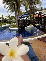 Заселили нас через 30 мин как мы приехали , пришлось подождать , но мы прилетели раньше времени заселения - все было по часам . Предложили на ресепшене напитки прохладительные . И мы пошли менять баты . Депозит 3 т бат , если кто не знал - знайте . Вернули нам его без проблем . Часть мы проели и просили в ресторане . Кстати ресторан с доступными ценами и оч вкусные блюда . Попробуйте пиццу с лососем -это пушка .