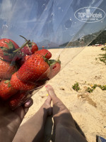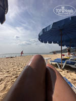 Пляж замечательный . Чистый . Убирают . Лежаки 200 бат на твоих . Это 2 лежака , столик и зонты . Мы брали . Иногда чилили под пальмой .