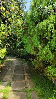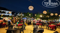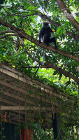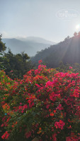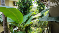 Территория отеля маленькая, на открытом воздухе в центральной части отеля столовая, и столики с креслами чтобы отдохнуть, две дорожки одна центральная на пляж, где зеленые ворота, и вторая нужно обогнуть двухэтажное здание, выйти в красные ворота, повернуть на лево, пару метров и вы на центральной туристической улице. По расположению всё близко, очень удобно. Территория ухоженная, цветочки, зелень, территорию постоянно убирают. На территории периодически бывают обезьяны, но не вредные и вороватые мартышки, а черные обезьяны (лангуры), они не спускаются низко, но ждут чтобы банан на дерево закинули. Также на территорию приходят вараны, их гоняет местная собака, собака ко всем дружелюбная, ласковая, играть просится. А вот варанов не терпит, гавкает на них и очень злится, те ее бояться и бегут быстрее, да мы очень удивились, что вараны умеют так быстро бегать)) Еще видели змею, но она нас испугалась и быстрее уползла. Еще всякие птички прилетают, поют, чирикают, их просто множество, бурундуки прыгают по проводам. Изобилие природы! Это очень классно, ты живешь рядом с ними практически, никто никого не трогает, ну и самим главное не лезть. Так как наш номер был на втором этаже, а это последний этаж, утром, да и в течении дня, по крыше кто то бегал, то прыгал, то чирикал и т.д. Сначала это отвлекало, а потом мы уже стали понимать, что это обезьяна пробежала, это птичка проскакала, а это бурундук прыгал.