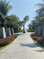 Наша группа из 12 человек была в отеле в начале апреля и погода нас не подвела, было солнечно и ни каких дождей. От аэропорта до отеля минут 15 езды, что тоже большой плюс, так как долгий перелет с Астаны 7,5 часов утомил и все хотели побыстрее отдохнуть. По приезду в отель нас довольно быстро, в течение часа заселили по номерам. Персонал очень приветливый, радушный, улыбчивый, вьетнамцы, говорящие на английском. Номера просторные, есть всё необходимое: халаты, сланцы, шампуни, мыло, зубные щетки, пасты, чайник, кофемашина, чашки, тарелочки, ложки, пакетики с чаем, капсулы с кофе, разные виды сахара, вода в стеклянных бутылках. Что было очень приятно, принесли комплимент в виде кокосов, фруктов, печенек. Уборка была ежедневно, смена белья вроде через день. Питание на базе завтрака разнообразное. Фрукты такие как драгонфрут, арбузы, ананас, агава, бананы, маракуйя. Вкусные супчики на выбор с курицей, мясом, тофу. Много разной зелени, огурцы, помидоры, капуста брокколи, цветная. Яйца, сыры, суши, вьетнамская национальная кухня… Йогурты, орешки, мороженое, много выпечки разной, соки, фрэши… В общем голодным не останешься, наоборот думали как бы умерить свой аппетит) Единственнное не было морепродуктов. Территория это отдельная тема, очень большая , красивая, ухоженная, всё утопает в цветах и пальмах. Бассейны чистые, есть детский с небольшими горками, есть длинная извилистая горка-труба. Лежаков на пляже хватало, море как наверное во всем Вьетнаме с волнами, вода прозрачная. Были на экскурсии в Далате, три часа езды, очень понравился город, воздух немного прохладнее, дышится легко, много интересных локаций. До Нячанга полчаса езды, можно закупиться продуктами, фруктами, сувенирами, поесть в грилькафешках или торговых центрах. Доллары лучше обменять на их валюту-донги, 1 доллар -23300 донгов. В целом и отель Мовенпик , и сам Вьетнам понравились. Поездкой очень довольны.
