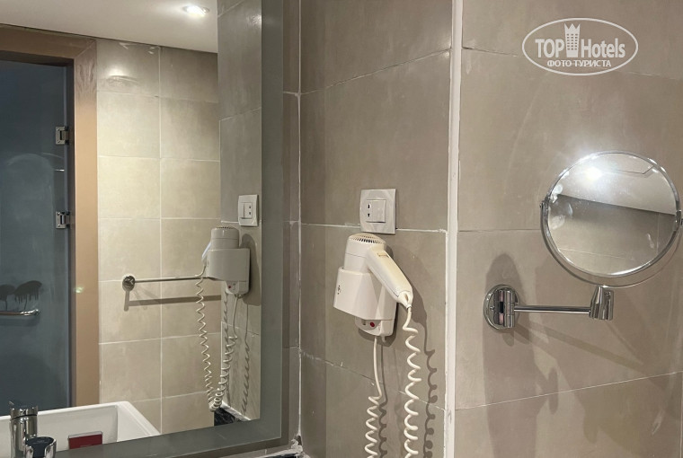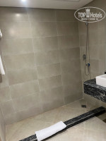 Приехали мы в обед около 14ч , заселили нас сразу же, по времени заняло 5-10 минут. Был оплачен номер премиум, увидев его возник вопрос: а премиум ли это? оказалось-да)) Свежий ремонт конечно был, но последствия ремонта никто не устранял (это видно по фото). Вид с балкона сбоку на море и на стройку , но стройка видимо не рабочая, так как там тихо было.. Огорчила ванная комната-не было перегородки и вся вода разбрызгивалась и растекалась , а потом разносилась по комнате. Напор воды очень слабенький, что тоже огорчило.
