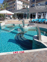 Есть бассейн внутренний,где комфортная вода. В других бассейнах вода была холодная. Глубина во всех 145 см. Возле горок 115 см.