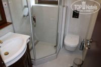 Санузел небольшой. Пользоваться унитазом даже немного неудобно, довольно близко стенка душевой кабины. Сантехника новая, как и убранство комнаты. Все отлично работает, все очень красиво оформлено.