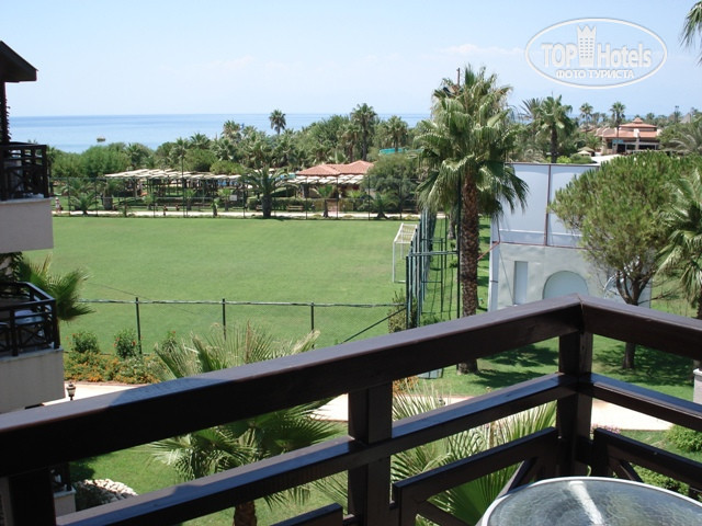 Во-первых, ОЧЕНЬ красивая, ухоженная и достаточно большая территория! Очень зеленая и цветущая! Иногда даже создавалось впечатление, что находишься не в Турции. Есть главный корпус и много бунгало. Считаю, что вид из номеров бунгало лучше, т.к. он в любом случае либо с видом на сад, либо на море, либо на бассейны. А вид из главного корпуса может выходить как на море и бассейны, так и на территорию другого отеля + хоз. блоки.