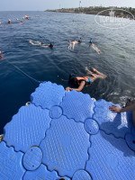 Понтон - это норм если нет шторма / ветра. Если сильный ветер / волны , честно сказать реально страшно . Но так страшно было только один день. Непогода. В другие дни все хорошо было , но я в тапочках шла по нему, очень горячий)))))