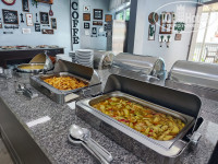 Чего только нет, меню разнообразное. Мясо, птица, рыба, котлеты, оливье даже есть, разные супы есть всегда: на завтрак, обед и ужин. Десерты вкусные, торты особенно! Кофе, чай круглые сутки в свободном доступе, питьевая вода бесплатно