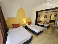 ЗАСЕЛЕНИЕ: В отель приехали в 13:15 часов. На ресепшен нас встретили приветливые сотрудники, сразу по приезде, нам надели браслеты и предложили сначала сходить на обед, а потом уже заселяться. При оформлении, вместе с ваучерами и паспортами, передал сопроводительное письмо от Top Hotels. После возвращения с вкусного обеда (с дегустации хорошего для Египта белого вина) на ресепшен, нас стал оформлять «хитрый и опытный» сотрудник DYAA он спросил, где я хотел бы жить и сразу «взял нас в оборот» - я сказал, что в отеле не первый раз и попросил номер на первом этаже в тихом месте. DYAA, со словами что у него есть для нас «специальное предложение» сам пошёл мне показывать номера. Я посмотрел три номера (один номер возле «нижнего» бассейна и второй возле «верхнего» они мне не понравились), а вот большой и удобный номер в центре сада мне очень понравился, поэтому пришлось заплатить «за удовольствие и просмотр» 20$. После оформления бумаг и выдачи нам двух ключей от номера, вместе с сотрудником перенесли наши чемоданы в номер (отблагодарив его долларом).