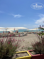 И немного про пляж и море. Лежаков на пляже достаточно как и у бассейна, нет такого что люди бегут в 6 утра кидать полотенца и занимать, мы спокойно выходили около 10 утра и они всегда были. Заход в море песок+галька, купались без коралок, море чистое бодрящее, но тут и плюс не как в августе парное молоко, ребенок купался без проблем. На пляже справа есть услуги парашюта, ватрушки, бананы и гидроцикл.