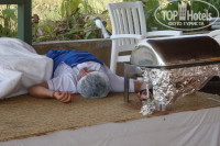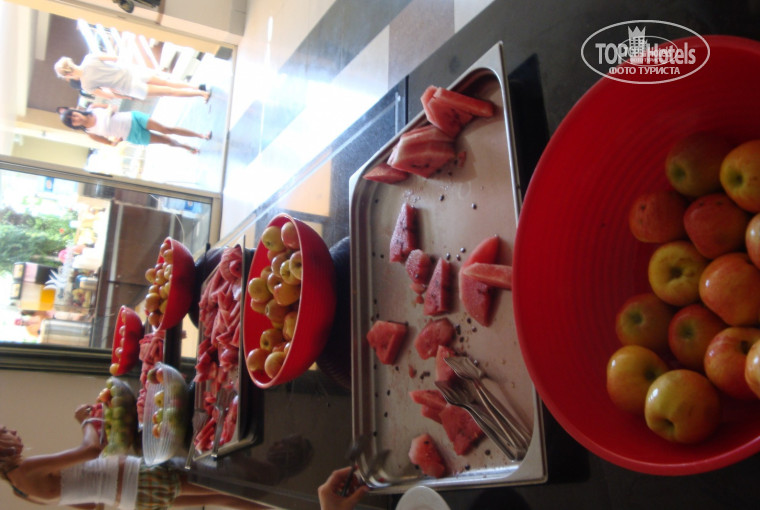 Этот отель даже на нормальную трешку не тянет. Море - грязное и ужасные острые камни. (Песчано-галичный только первые 1,5 метра, дальше: Прощайте здоровые ноги !!!). Кондиционеры работают только в номерах и спортзале. Во всех остальных частях отеля "Турецкая баня!!!" Холодильник в номере работает так, что за 10 дней отдыха лед так и не получился. Питание тоже никакое. За несчастной курицей огромные очереди, которую подают на единственном подносике. Пища вся не соленая, соли на столах вы не найдете только солонки - разумеется пустые, салфеток на столах разумеется нет. Импортные напитки и фреш соки в главном ресторане не дают даже платно. Что касается сладостей (я люблю сладости) там я их есть не смог: ФУ!!! Что касается разновидности фруктов - это арбузы (вода-водой) и яблоки. Иногда выставляли кислый виноград дыни и пару раз груши. Хочешь мороженное, только в определенное время и надо отстоять в очереди (дают только одно в руки). В пляжном баре-ресторане из спиртного только пиво (на любителя), курица еще паршивее, чем в ресторане - разодрана руками до костей и подцепить реально можно только голые кости. Анимация очень слабая, 2 вечера из 10 можно было развлечься более или менее. После 19.00 бассейн не работает. После 22.00 чтобы попасть к морю надо выйти через главный вход и сделать круг вокруг отеля и только тогда попадешь на пляж (1,5 км не меньше). Обратно тот же маршрут, т.к. в 22.00 калитку, которая ведет напрямую к морю, закрывают на замок.
