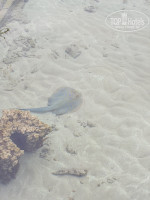 Про пляж уже писали очень много, знал куда ехал. Купаться только с пирса, есть несколько заходов в воду, чем дальше тем глубже. Рыбки есть,можно понырять с маской.