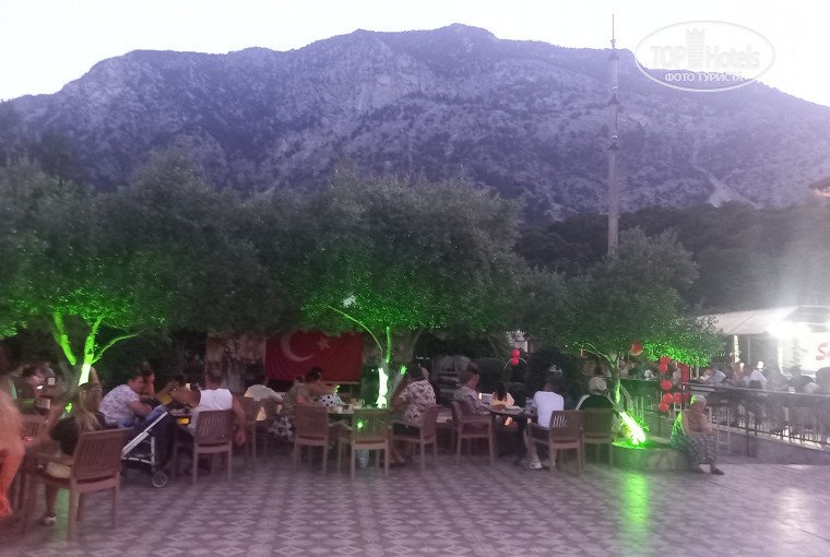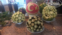Питание характерно для трёхзвёздочного отеля: однообразные завтраки, чуть разнообразнее обеды, более разнообразные ужины. Много овощей, большой выбор сладкого, из мяса в основном курица, иногда баранина и рыба (типа ставриды), из фруктов, в основном, арбузы, яблоки, апельсины, реже -бананы (нектарины, сливы-твёрдые, кислые). Для тех, кто привык к пятизвёздочному разнообразию и "ультра"- не вариант). Для непривередливых-нормально. Днём пекут на тандыре лепёшки с разными начинками. Все напитки порошковые из автомата. Чай пакетированный, заваренный в чайниках. Про вино и пиво написано в других отзывах (пришли к выводу, что спиртное лучше покупать в дьюти-фри в Анталье, в местных магазинах стоит в разы больше, некоторые везут с собой)). На дни нашего отдыха в отеле пришлось празднование Курбан-байрама, что значительно повлияло на ассортимент блюд, в том числе и от шеф-повара, в лучшую сторону)) Бросающийся в глаза минус в столовой-облезлые столы)) На улице около бара столы нормальные)).