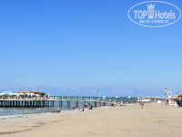 8. Пляж, не знаю даже вроде неплохой, основной это песок, заход то песок, то галька, когда волны к берегу заходить и выходить больно, так как намывает гальку, а она мелкая, я была в другом отеле, но там галька крупная и плоская, здесь же прям врезается. Вода, как повезет. То идеально чистая, то мутная и с водорослями. 2 дня вода была прям холодная из-за течения, и дул ветер с гор. Выходить было некомфортно. И это в середине июля. Почему отнесла к минусам, на пляже арендуют место лодочная станция. Т.е вы купаетесь, а рядом пирс, где постоянно катера, лодки, мотор, шум, волны… ну и бензин. Спокойного моря почти не было. И кстати глубина начинается почти сразу, маленьким детям опасно. И дно тоже то галька, то песок. Плавать далеко нельзя, буйки, так что особо не разбежишься. А за буйки нельзя, если не хотите чтобы вас переехал катер.
