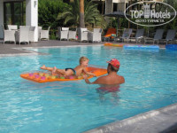 В номерах новая мебель, современная техника (телевизор, кондиционер, сейф, холодильник-мини бар, фен, удивило обилие удобно расположенных розеток - можно заряжать все необходимые устройства сразу!). Удобные шезлонги вокруг бассейна (разная глубина, есть детский), тут же расположен уютный бар, вечером бассейн подсвечивают разными цветами и он становится красивой частью интерьера бара (есть и удобные столики с креслами и диванная зона, вечером горят свечи, бармен болгарин делает потрясающе красивые и самые вкусные коктейли в поселке!).