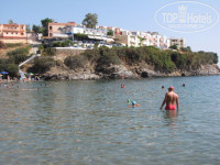 Море шикарное (эгейское)- уютная бухта с волнорезом, почти нет волн, и пляж и дно - нежный песок, стоит взять маску - у волнореза и скал, где на дне камни, много рыб и морских ежей (до Египта далеко, но есть на что посмотреть), очень удачное место учить плавать детей или первый раз плавать с маской и ластами.