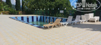 Отдыхали мы в данном пансионате 13 дней. Впечатления остались только негативные. Мы понимали куда едем, настраивались на то, что мы едем на море, там красивая природа, но всё впечатление об Абхазии было перечеркнуто данным пансионатом. Начну с заселения. На ресепшене на встретила хамоватая девушка, которая со всех требовала деньги за страховки, хорошо, раз нужно, заплатили. Дали нам ключ от номера, мы пошли заселяться, никакого вида на море просто не было, был вид на стройку, на наши возмущения, что у нас проплачен вид на море администратор ответила, мест нет, что выдала, там и живите. Номер на 1 этаже, убитый, двери в номер, санузел и на балкон жестяные, старые, гнутые, ломаные. В номере 2 кровати, на большой очень жёсткий матрас, старый телевизор, который почти ничего не показывает, шкаф. Санузел убитый, душ за шторкой, унитаз не смывает. Питание у нас было проплачено "всё включено", отличается от полного пансиона тем, что с 10 до 20 в баре дают пиво, вино, мороженое, но только 1 в руки. Все остальное, даже вода за деньги. Питание так себе, голодными не ходили. На 3 день подхватили ротавирус и переболели все по очереди. Было очень плохо, поэтому решили вызвать скорую, администратор на ресепшене сказала, что на это не поедет скорая, зачем мы тогда местную страховку покупали?Ротавирус ходит по пансионату, в аптечном пункте были очереди. Территория отеля оставляет желать лучшего, рядом стройка, где с самого раннего утра идут работы, с права от отеля ресторан, где музыка до часа ночи. Бассейны грязные циркуляции и очистки воды нет. Вообщем данный пансионат не рекомендую ни кому.