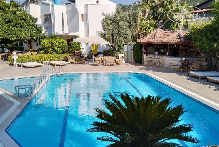 цель отдыха состояла в том, что бы не добавлять пару десяток тысяч за другой отель,а потратить эти деньги на другой город в Турции, посетив прекрасный Каш.Об отеле.Честно и на свой взгляд.Небольшой,состоит из трёх трехэтажный корпусов.Нас заселили в номер 309, третий этаж основного корпуса.Номер очень скромный,даже очень..Современный телевизор( 3 русских канала с сериалами, новостей нет, по понятной причине, на отдыхе самое то, ну и со странной, забавной рекламой).Нормальный кондей,но над кроватью, направили в другую сторону, стало хорошо.Имейте ввиду,третий этаж, номера нагреваются от крыши, была сильная жара ☀️и постоянно пришлось быть с кондиционером, даже ночью, без него и дышать тяжело.И ждать, когда комната охладиться.Вид на горы⛰️бассейн и территорию.Нам понравилось.Выбор пал на отель без анимации, нам очень нравиться тишина, а не "орущая попса".Здесь самое то.Но вот, думаю, что номера, которые на дорогу, там не так тихо, шум от машин и соседнего отеля ( новый, вернее реновирован,ещё в прошлом году были там,не понравилось, на сегодня совсем другой и 18+, поэтому и постоянно музыка).Удивил сильный напор воды, приятно очень! Чистота...ну как сказать, помягче..ну нет ее особо, я чистюля ( кое где сама прибралась).В общем.Шторы старые, да и "стопы" вылетели, не закрывались, сами придумали, как прикрыть их.Полотенца и постельное белье...ну такого я ещё не видела, все в полосах темных и пятнах, вот чувство такое, что забыли сменить, на следующий день предъявила претензию, все исправили и поменяли, со слов других туристов у них все кипельно- белое.Хммм..Через дней шесть попросила сменить, неохотно, но сделали.Мыльных принадлежностей можно сказать нет, дозатор сломан был и 2 тюб.с отвратительной разбавленной жидкостью.Про мытьё пола не скажу, не видела и на взгляд не похоже, что мыли.Сам отель на вид не особо замученный и оставляет приятное впечатление Очень понравилась ухоженная зелёная территория.🌴Про нее, дочь рилс "запилила", но Топхотелс видос не грузит, к сожалению.Приятно на воздухе принимать пищу, но мешают мухи и осы.Что то, у меня часто слово НО.Бассеин чистый, приятный, вода теплая на жаре.А вот пользование им в определенные часы, с 10.00 - 18.00 час.Это минус.Очищение, говорят.Питание.Я поняла, что нам достаточно и полный пансион, а не все включено.При этом меню не такое разнообразное, но вкуснее, чем в некоторых "все вкл". Один вид супа,пару гарниров,одно мясное( индейка, рыба, котлетки и ещё, что то, разное каждый день, потом уж повтор через несколько дней), салаты,зелень, овощи, постоянно был 🍉 арбуз, иногда 🍈 дыня.Пару пироженных.Бывают небольшие очереди, так как накладывает персонал. И лучше к началу подходить, может, что то вкусное не хватить..😀Или на добавку.Особенно при полной загрузки.Да и столик однажды пришлось ждать.Пляж.Пешком идти минут 15, вдоль неприглядных речек и катеров местных жителей.Сначало было в интерес к экзотике, а потом напрягала нечистота.Сам берег галечно- песочный.Дикий и не ухоженный.Вход каменный,лучше в коралках.Рядом платный.Мы этот пляж поначалу и не нашли, вернее не дошли.Помогло новое знакомство, нас довели.😀 Чаще ходили на городской,дальше,но чистый, море нежное, теплое,камушки небольшие.Есть платный автобус, который забирает на дальний пляж" Панорама".Один "американский" с персоны в одну сторону.В самый сезон забивает