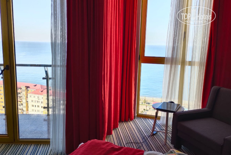 Бронировали улучшенный номер утром этого же дня, - на 1 сутки так как не знали, понравится здесь или нет. Первое впечатление оказалось хорошим, поэтому сразу же забронировали, а на утро оплатили еще 2- суток проживания. В итоге уехали отсюда только 5 января. "Виной" тому красивые виды и достопримечательности Батуми, отличная погода (днем было плюс 12-14 градусов), спокойное красивое синее море, синее небо и даже дельфины которых мы увидели прямо из номера 1 января).