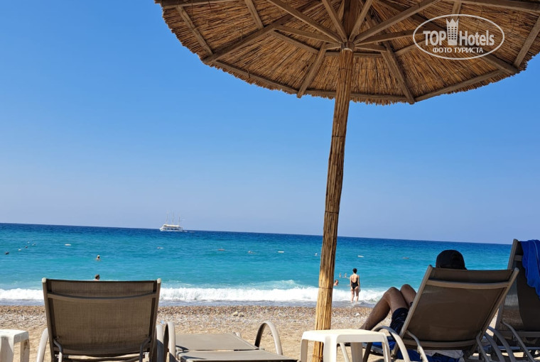 Здание отеля на первой линии, до пляжа ведут две озелененные дорожки (см. фото). Они проходят вдоль большой неосвоенной лужайки, которая, как нам объяснил гид, «пока принадлежит государству». Пляж шириной около 100 м, довольно протяженный в глубину – от моря до крайнего ряда лежаков метров 60. Самих лежаков (в т.ч. бесплатных) всегда хватало. У бассейна мы не зависали, но и там всегда видели свободные места. В зоне Spa имеется еще один бассейн, там вообще никогда никого не было. Уборка номеров, замена полотенец и пополнение мини-бара ежедневно. Сейф и Wi-Fi бесплатные.