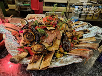 Пожалуй, самый большой плюс Selectum for two Side – это питание. Такого уровня мы не встречали с конца нулевых: красиво, разнообразно, много и очень вкусно. Помимо всевозможных варено-жарено-пареных горячих блюд и холодных закусок на обед и ужин всегда были рыба (отварная и гриль: форель, дорадо, сибас, скумбрия), загриленные овощи, вариации курицы, индейки, говядины и баранины (от шашлыка до люлей-кебаб и шаурмы). Раков, как кто-то писал выше, мы не застали, но была паэлья и салаты с морепродуктами. Раз в неделю устраивался рыбный и итальянский день. В течение всего дня много фруктов и выпечки. Никакой дискриминации со стороны официантов, как кто-то писал, мы не заметили.