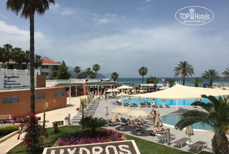 Здравствуйте. Отдыхали во второй половине мая 2023 года. Супружеская пара из Белоруссии Татьяна и Игорь. Впечатления от отдыха самые положительные. По приезду в отель нас встретил очень приветливый администратор Махамет. После регистрации он погрузил наши вещи на электромобиль и довез нас до нашего корпуса, затем доставил вещи прямо в номер. Когда покидали отель, Махамет также на электромобиле привез нас с вещами на рецепшн. Затем он предложил нам обвернуть наш багаж пленкой, всего за 4 доллара, чем мы и воспользовались. Жили мы в четырехэтажном корпусе . В номере все чисто, аккуратно. На первом этаже выдавали полотенца для пляжа. Там же расположена зона СПА. В корпусе работает два лифта. Территория отеля большая. Большим вниманием пользуется центральный бар отеля, где постоянно бесплатно можно было заказать всевозможные слабоалкогольные и крепкие алкогольные напитки. В любое время можно было самим сделать кофе через автомат. Также предлагался чай в пакетах. Рядом постоянно находились чайники с горячей водой. В баре постоянно играет очень приятная музыка. Недалеко от бара расположены бассейны. Где постоянно на лежаках под зонтиками находились отдыхающие, так как этому способствовало близкое расположение бара и приятная музыка из бара. Кроме того аниматоры отеля на площадке возле бассейна постоянно проводили различные конкурсы. Пляж отеля никогда не был полностью заполнен, что позволяло менять и лежаки и их расположение, чтобы находиться под навесом или на солнце. Но на пирсе в солнечную погоду почти все лежаки были заняты. Температура воздуха в период нашего отдыха была примерно от 18 до 24 градусов. Иногда шел дождь. Но это никак не помешало нам постоянно купаться в море, хотя оно и было несколько прохладным, а также в меру загорать. Как преимущество, мы могли целый день находиться на пляже, прерываясь только на обед в ресторане или на прием пищи в снэк-баре. Питание в ресторане прекрасное. Кроме того, с ресторана, который расположен на третьем этаже открывается очень красивый вид на море и на часть территории отеля. А если расположиться на балконе ресторана, то оттуда вид вообще изумительный. По приходу в ресторан нас постоянно приветствовал шеф-повар Идрис. Питание очень разнообразное. На ужине всегда была клубника. Каждый день предлагались блюда различных кухонь: турецкой, итальянской, мексиканской и др. Интерьер ресторана также преображался в зависимости от предлагаемой национальной кухни. Погружению в национальный колорит благоприятствовала и музыка страны происхождения блюд. Вечером в амфитеатре постоянно проходило шоу для детей, затем там же проводилось шоу для взрослых. Это были выступления африканских акробатов. Зрелище потрясающее. Таких номеров мы никогда раньше не видели. Также выступал танцевальный коллектив с уклоном на гимнастические элементы. Выступал женский танцевальный коллектив. Девушки были в основном из латинской америки. Было выступление турецкого танцевального коллектива с уклоном на национальные традиции. Кроме того, проводились традиционные конкурсы Мистер и Мисс Hydros. Атмосферу праздника создавал конферансье, который на 4-х языках заводил присутствующую публику. После шоу возле центрального бара проводилась концертная программа с живым звуком. Исполнялась популярные современная музыкаль