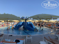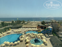 Отдыхали в июле семьей в этом отеле: 2 взрослых и 2 детей. Скажу сразу….. делать с детьми здесь нечего! Кругом грязь, грязные окна, стены, в номере грязь на полу была, ламинат весь горбами. Мебель вся потасканная. Мы живем на 5 этаже, из 4-х лифтов работаю 3, еле-еле. Могут привезти не туда!!!Кнопки этажа не все на месте🤪. Мы замучились таскать коляску с ребёнком по лестницам. За едой очереди огромные!!! За мясом, рыбой - по 40человек🙈! Пока ни разу не удалось попробовать!! В баре на пляже за фастфудом тоже гигантская очередь ! За пивом также!!!