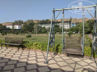 Территория у отеля не очень большая, но зеленая, ухоженная. Есть два бассейна, для взрослых и поменьше детский, бассейны чистили два раза в день, утром и вечером. Возле большого бассейна в этом году вместо зонтиков сделали навес, добавили лежаков, с торца под деревьями установили деревянный настил и на него тоже поставили лежаки. С противоположной от навесов, солнечной стороны бассейна установлены подвесные корзины с очень удобными подушками, между ними также лежаки. На всех лежаках возле бассейнов мягкие матрасики. Пляжные полотенца также выдают при заселении и меняют через 4 дня.
