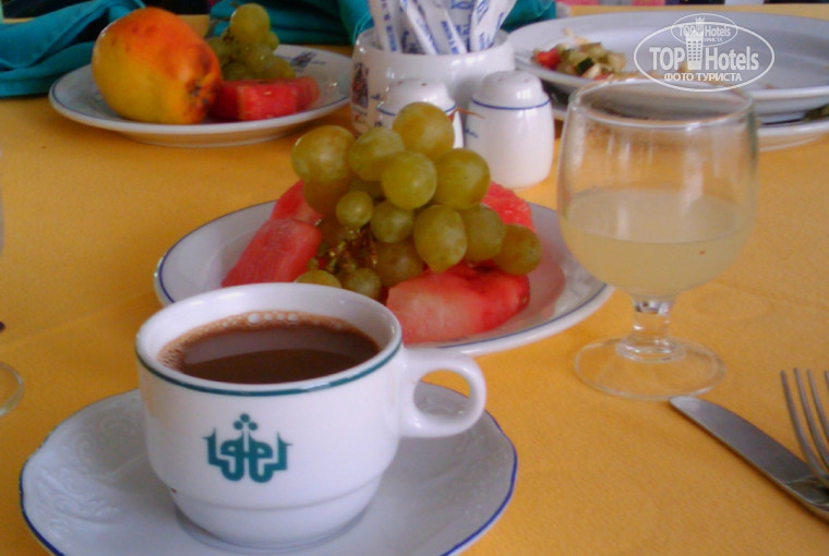 В целом, отель и отдых мне понравился. До реальной пятерки не хватило более обходительного сервиса, - все-таки хамские менеджеры в столовой и навязчивые горничные очень напрягали. + нельзя не сказать, что отель немножко пообтрепался, но вполне приличен. Лучше чем тунисские тройки (мы их видели, когда ездили по экскурсиям и останавлиывались на обеды в ресторанах при отелях). Еда вполне приличная. Мне понравились запеченные овощи и местный сыр. Также всегда были свежие круассаны и различные топпинги к ним. +Разнообразие фркутов - дыни,арбузы,виноград,сливы,яблоки,груши...