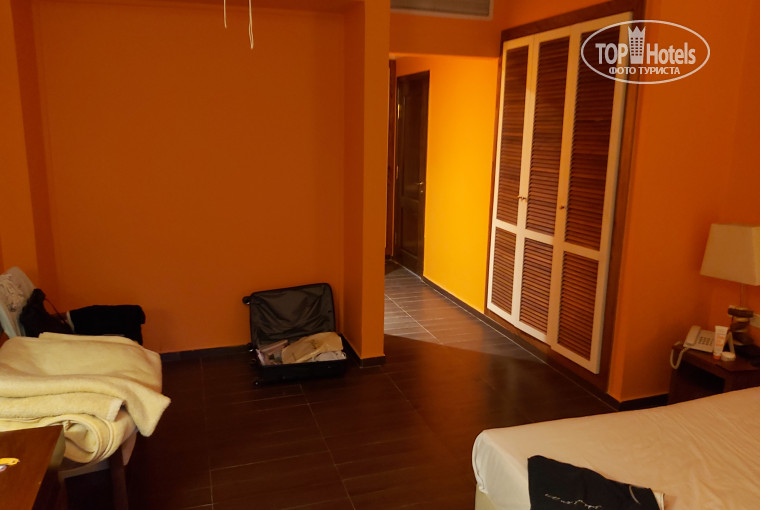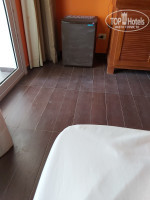Про номер. Номер старенький. Шторы пыльные, местами оборванные. Первоначально на кровать были положены очень жесткие матрасы из бамбука без пружин (понимаю отель, такие матрасы "вечные", но спать на них сможет только гейша). После жалоб сменили на старый продавленный матрас, который был помягче. Кондиционер работал только в одном режиме - т.е. в нем не было ночного режима, нельзя сменить скорость и т.п. Поэтому кондиционер очень шумно работал и на ночь его не включишь. Поэтому включали кондиционер на весь день, чтобы охладить номер к ночи и ночью спали без него. В душе был очень слабый напор воды, хотя в кране напор был хороший. Первоначально в душе не было горячей воды, но в кране она была. После нескольких дней жалоб горячая вода появилась. В моем номере не было интернета, хотя в некоторых номерах он был - т.е. как повезет, где то он есть, где-то нет. Номер убирали каждый день - вне зависимости от того оставляли бакшиш или нет. Но уборка состояла в том, что грязноватую воду равномерно размазывали по полу, так что толку никакого (видно по фото холодильника). Правда белье и полотенца вроде меняли своевременно.