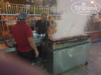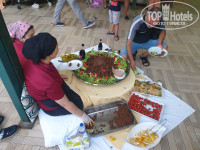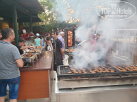 С едой конечно печально!) По сравнению с остальными отелями где я был. Фрукты: яблоки и апельсины. Выпечка и тортики не понятно, что это. Вот тот же суп на обед, ни гренок, ни зеленушечки. Утром яйца и оладьи жарит один человек на одной плите, очередь...... . Омлет раньше 8 не делают, один раз в 8.30 только начали. Делают его сразу со всеми ингридиентами, потом режут на куски. Фри, порошковая пюрешка ( у меня шла с какой никакой рыбкой, какая то маленькая была и скумбрия), мясо индейка на гриле и какое то непонятное похожее на прессованное. Салатов не касаюсь, я вообще их в Турции не понимаю), беру свежую нареку: помидоры, лук, огурцы. Крепкий алкоголь приколол))) весь в бутылочках по 50мл, как в дъютифри ( водка, виски, и чтото еще). Вино трех видов из нормального размера стеклянных бутылок. В воскресенье был турецкий день, тут на ужин с едой по веселее было!) В общем голодными не останитесь!!!) Но жидковато!))) Да, посуды много отбитой, но грязной я не видел ни разу!