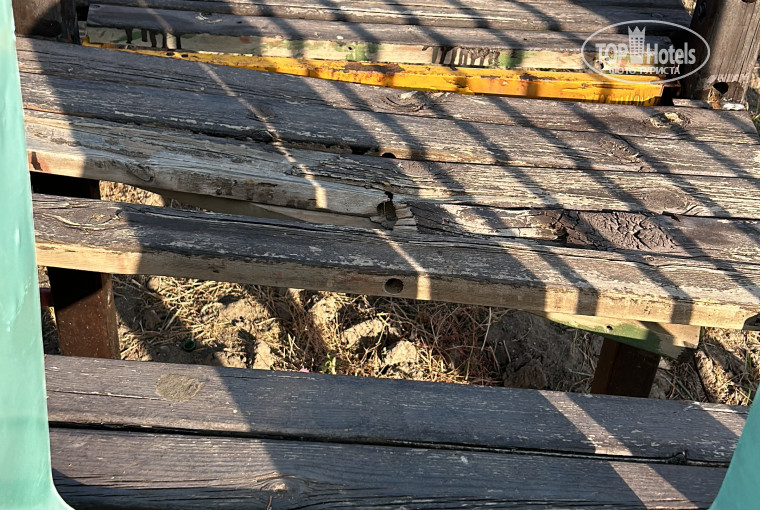 Окей, починили и пошли мы есть. В отеле куча котов. Штук 20 точно. Везде кошачьи экскременты и пахнет кошками. Отдыхающие активно подкармливают животных, поэтому кошки спокойно себя чувствуют в «ресторане» и даже запрыгивают на столы. Да, отель pet friendly, но как бы под этим понятием имеется в виду другое. Зашли после завтрака на детскую площадку. Сказать, что это ужас и кошмар-это ничего не сказать. Отломанные балки, торчащие гвозди, сломанные качели и перекопанная под горками земля, пахнущая кошачьим туалетом. Просто шок! Как можно так относиться к детям?! Это не только не безопасно, но и говорит о менеджменте отеля.