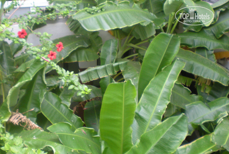 Номер был нормальный. Относительно чистый, плесени не видела. Дали с видом на внутренний мини-дворик, вид был на стенку отеля, а между небольшая банановая роща. Вид, конечно неахти, но я не растроилась, так как предпологаю, что в номерах с видом на центральную улицу очень шумно и пыльно. Есть ещё номера с выходом на бассеин и гору, выглядело достаточно мило и тихо. Бесплатно в номере телевизор (есть их местные каналы, музыкальные и даже Первый и РТР), кондиционер (работал). В общем интерьер ничего особенного, но мебель первой необходимости есть. Кровать, шкаф с вешалками, зеркало с полочками, пару столиков-скамеек.