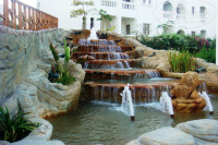 Территория отеля достаточно компактная, но очень красивая, много зелени, цветов, фонтанчики, водопадики. И очень удобно устроена. Чтобы из номеров добраться до пляжа, можно идти не по солнцу, а по галереям, в тенечке.