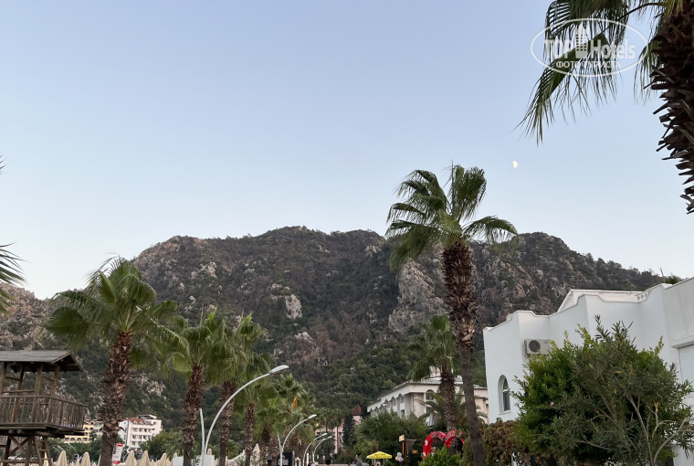 расположение отеля очень удобное, долго думали где отдыхать в Мармарисе или здесь, но тут спокойнее и буквально через дорогу от отеля ходят маршрутки до Мармариса, ехать минут 15, там конечная рядом и приезжают они пустые, что очень удобно, цена 25лир)
