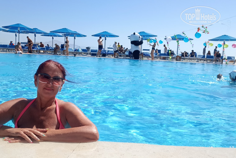 Территория. Очень нравится. Большая, зеленая, ухоженная. На бассейнах чистота, на пляже тоже. Постоянно убирают, вытирают, на пляже песочек чистят Спасатели!!! Мне их даже жалко. Целый день на ногах. Мы большую часть находились на главном бассейне. Зв целый день даже не присядут.