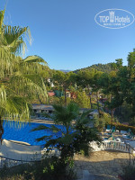 Многочисленные домики отеля расположены на горе и напоминают городок со множеством ступенек и дорожек, ведущих от яруса к ярусу, ...арок,.. вокруг красивые цветы, пальмы, лиственницы, цитрусовые деревья со спеющими грейпфрутами и мандаринами...