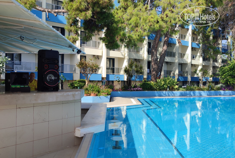 Плюс отеля - это его размещение. Отель вытянулся вдоль моря на 300 метров, всё удобно и под рукой:пляж, бассейн, ресторан, сауна. Хорошая горка в бассейне, детям понравилась. Низкая плотность людей везде. Это огромный жирный плюс, опять же, возможно, из-за нашего пребывания в последнюю неделю работы отеля.