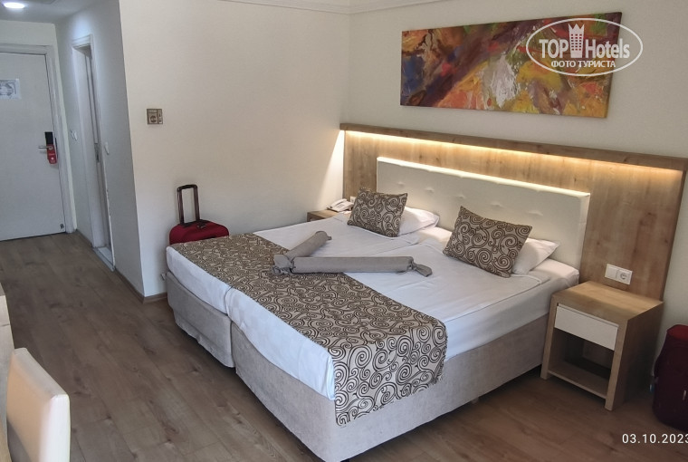 По самому номеру, скажу так, номер достаточно неплохой - удобные кровати, телевизор, сейф, балкон, санузел с душевой кабиной, в общем. нормально.