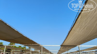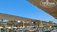 Сам пляж большой, приятный песок. Навесы вроде и есть, но скорее нет. Узкие полоски навесов, за которыми придется бегать в поисках тени. Даже в октябре, когда мы были, тень была нужна, в пик сезона, это вообще видимо печально. Не могу понять, в чем проблема сделать широкие навесы, пусть на половине пляжа? Место найти можно конечно, без занимал лежаков никак, но если придете поздно, ближе к 11, то могут быть проблемы.