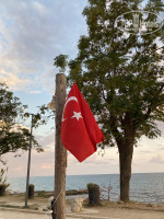С 11:00 до 16:00 лепёшки гезлеме с разными начинками, оооочень вкусные.Также есть мороженое (несколько видов) и прохладительные напитки.Если не хотите возвращаться на обед в отель,то можно полноценно пообедать на пляже.