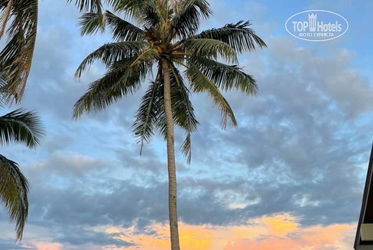 Выход ня пляж был прямо из номера, при входе попадались камни и далее при заходе в воду в зависимости от отлива или прилива была коса из рифов на глубине по колено или по грудь. Хорошо что взял с собой коралловые тапочки поэтому без проблем в них перебирался через риф и там плавал с маской рассматривая рыб. Но из 9 дней 6 дней были дожди, иногда моросил он весь день переходя переодически в ливень. дважды по ночам была большая волна, которая чуть ли не до самого номера размыла берег. После большой волны вода была довольно мутная, поэтому одевать маску не имело смысла.