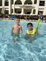 Для семейного отдыха отель шикарный убираются очень хорошо в номерах всегда чисто и постельное белье меняют каждый день, полотенца всегда новые это очень важно, очень доброжелательные, улыбчивые, очень красивый отель, понравилось абсолютно все! Теряли кроссовки ребенка, оставили на корабле , они на следующий день нашли и привезли в наш отель, огромное спасибо администрации 👍🏽 Очень много привозного, приятного песка. Жаль только вид с берега портят коралловые наросты и картинка получается не очень. Но для нас это вообще не имело значения. Плюс на пирсе есть спуск на глубину у кораллового рифа. Хотя отель и позиционирует себя для спокойного отдыха но здесь сильная и профессиональная команда аниматоров, и есть очень хороший аквапарк. В плане еды в отеле все хорошо, на те деньги что заплатили за тур кормили нас просто отлично!) Мы всем очень довольны и обязательно приедем отдыхать в этот отель еще раз! И не смущайтесь что это район Сахл Хашиш ехать минут сорок максиму но в Хургаде вы подобного варианта не найдете! И еще здесь везде очень приятно пахнет особенно в туалетах! Т к мы отдыхали в январе здесь немного ветрено и очень большой плюс что есть бассейны с подогревом! На аквапарке тоже с подогревом) спасибо за такой классный отдых.